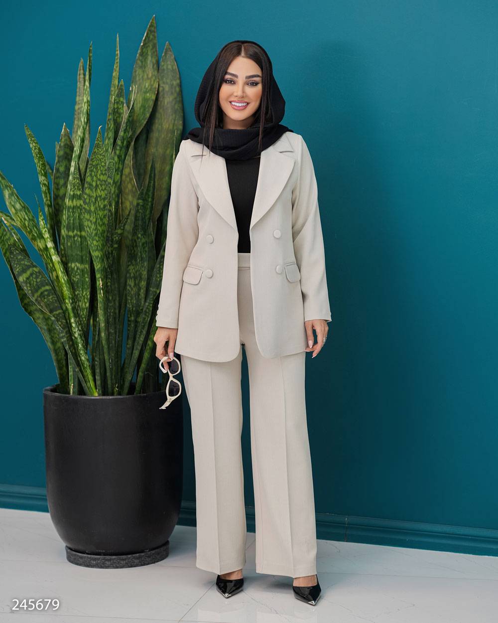 جزئیات: جلو باز .یقه انگلیسی .جیب کاربردی.پشت شلوار کمر کش