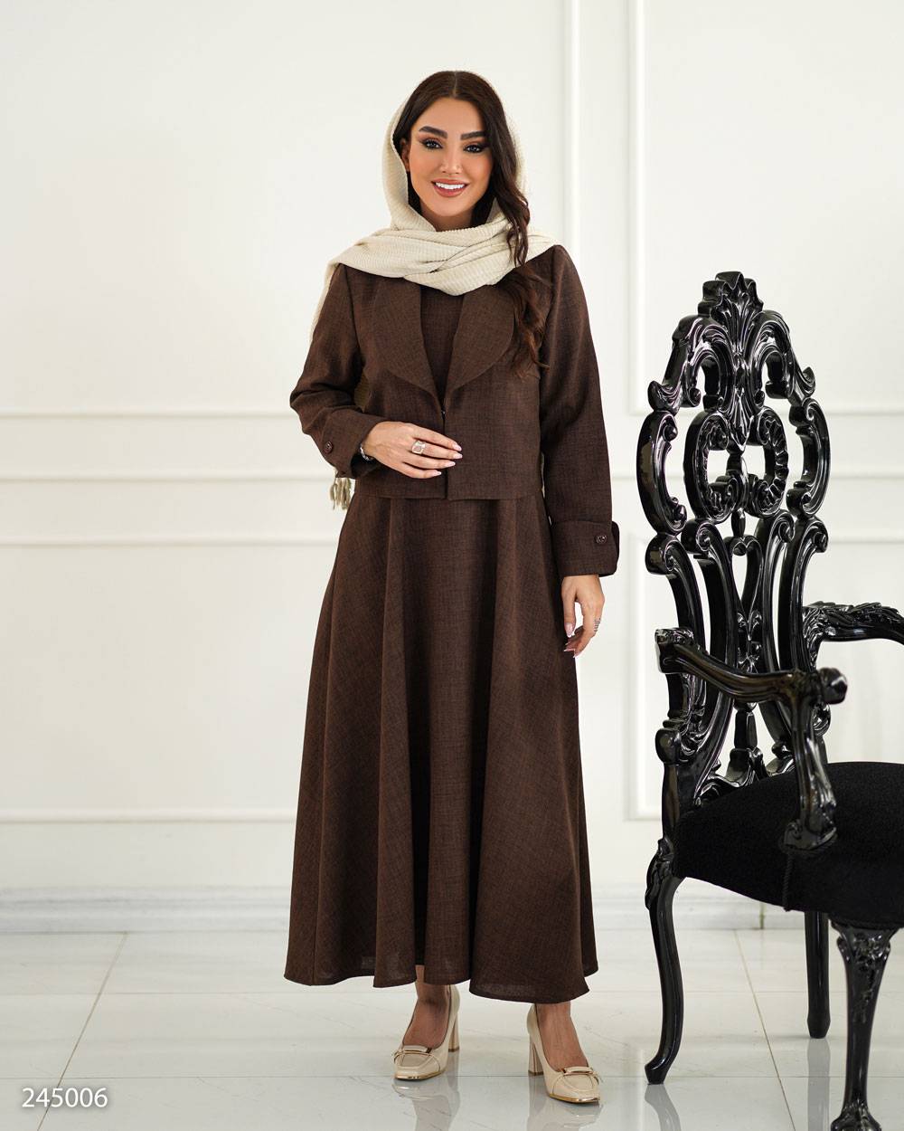 یقه آرشال .پشت سارافن زیپ دار.