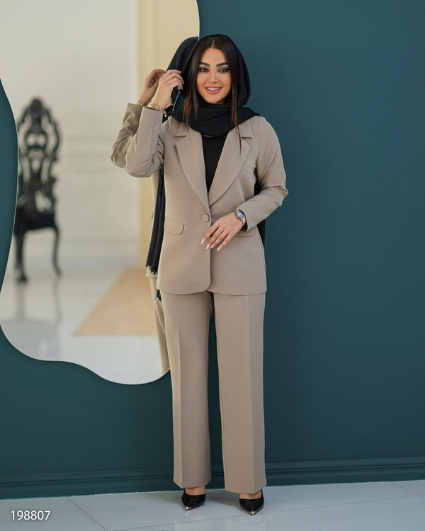یقه انگلیسی .تک دکمه.جیب کاربردی.پیش کار لایی پرشین .پشت کمر شلوار کش کار شده