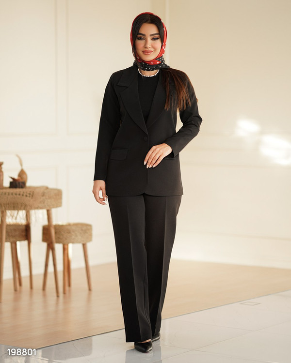 جزئیات: یقه انگلیسی .تک دکمه.جیب کاربردی.پیش کار لایی پرشین .پشت کمر شلوار کش کار شده