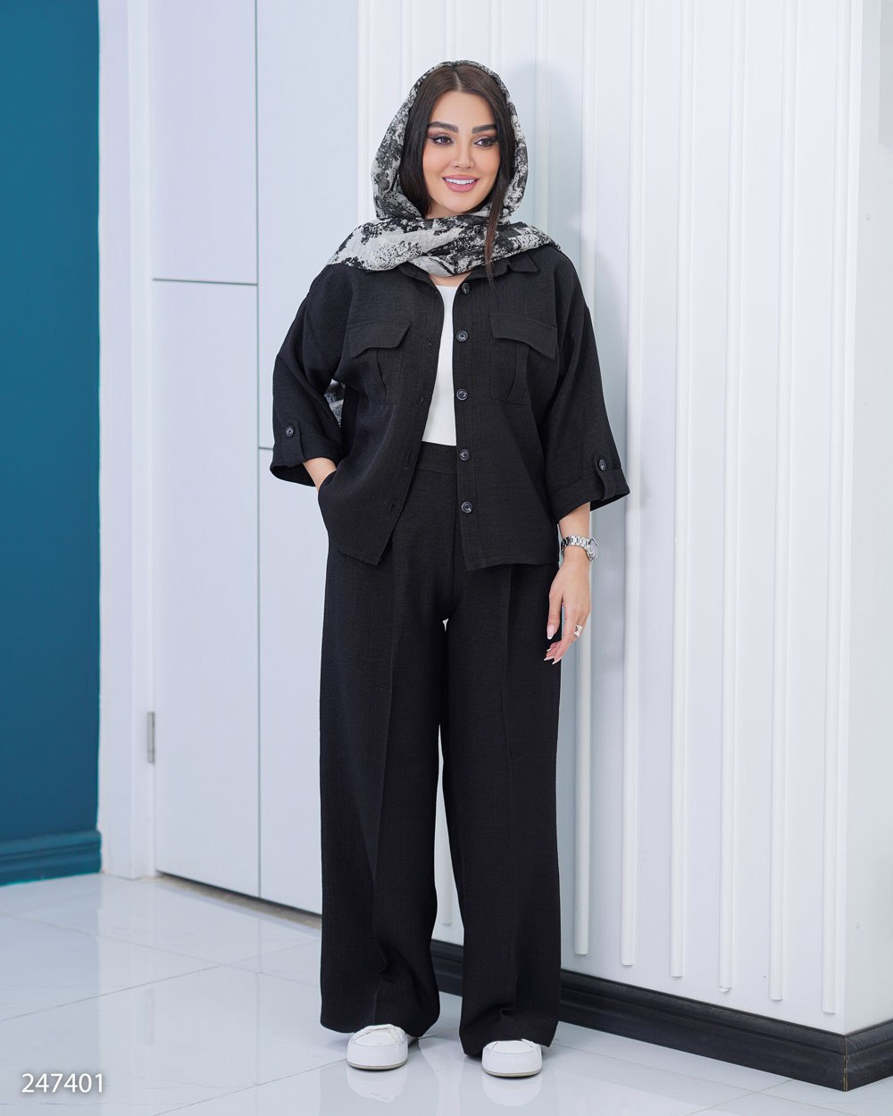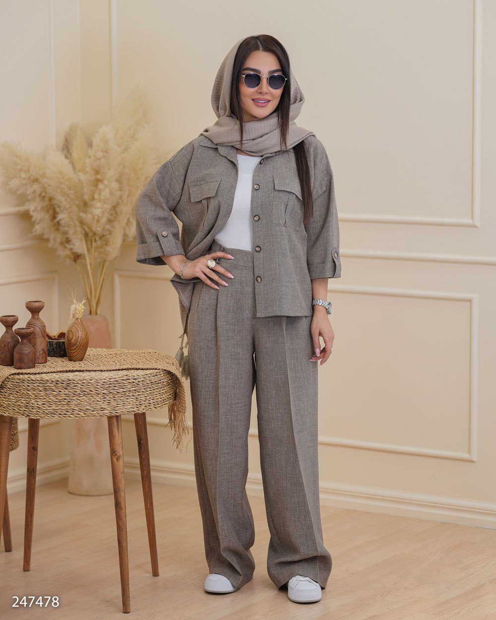 جزئیات: سر آستین پاگون دار/پشت شلوار کمر کش/شلوار جلو پیله دار/شلوار جیب دارد