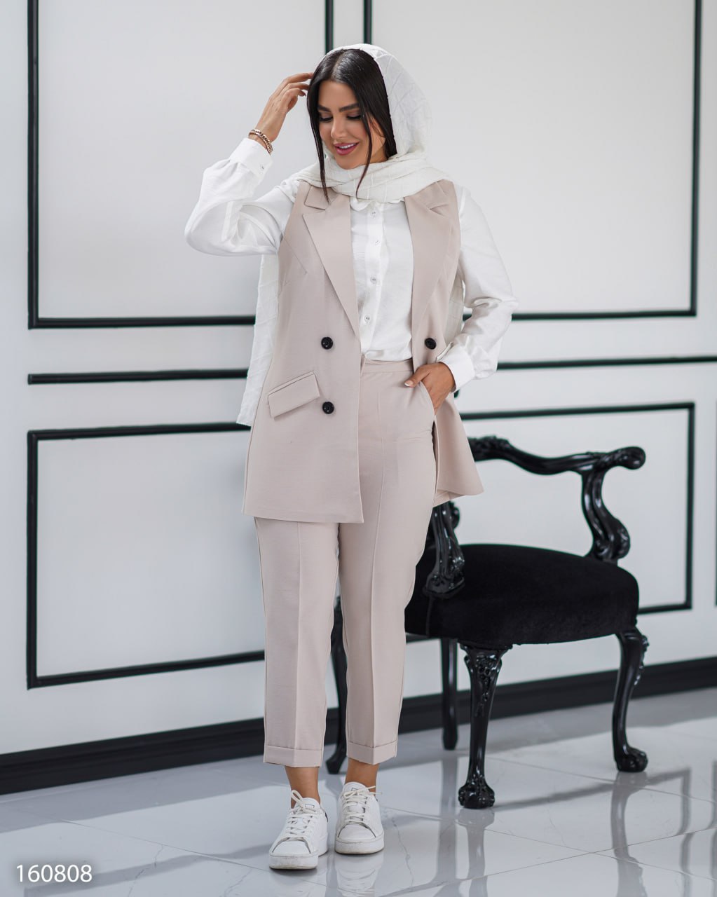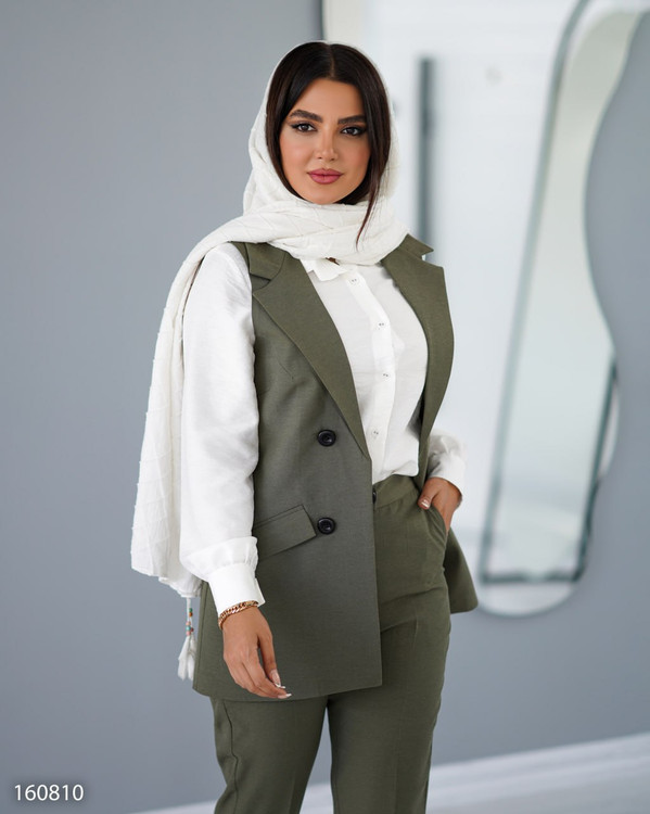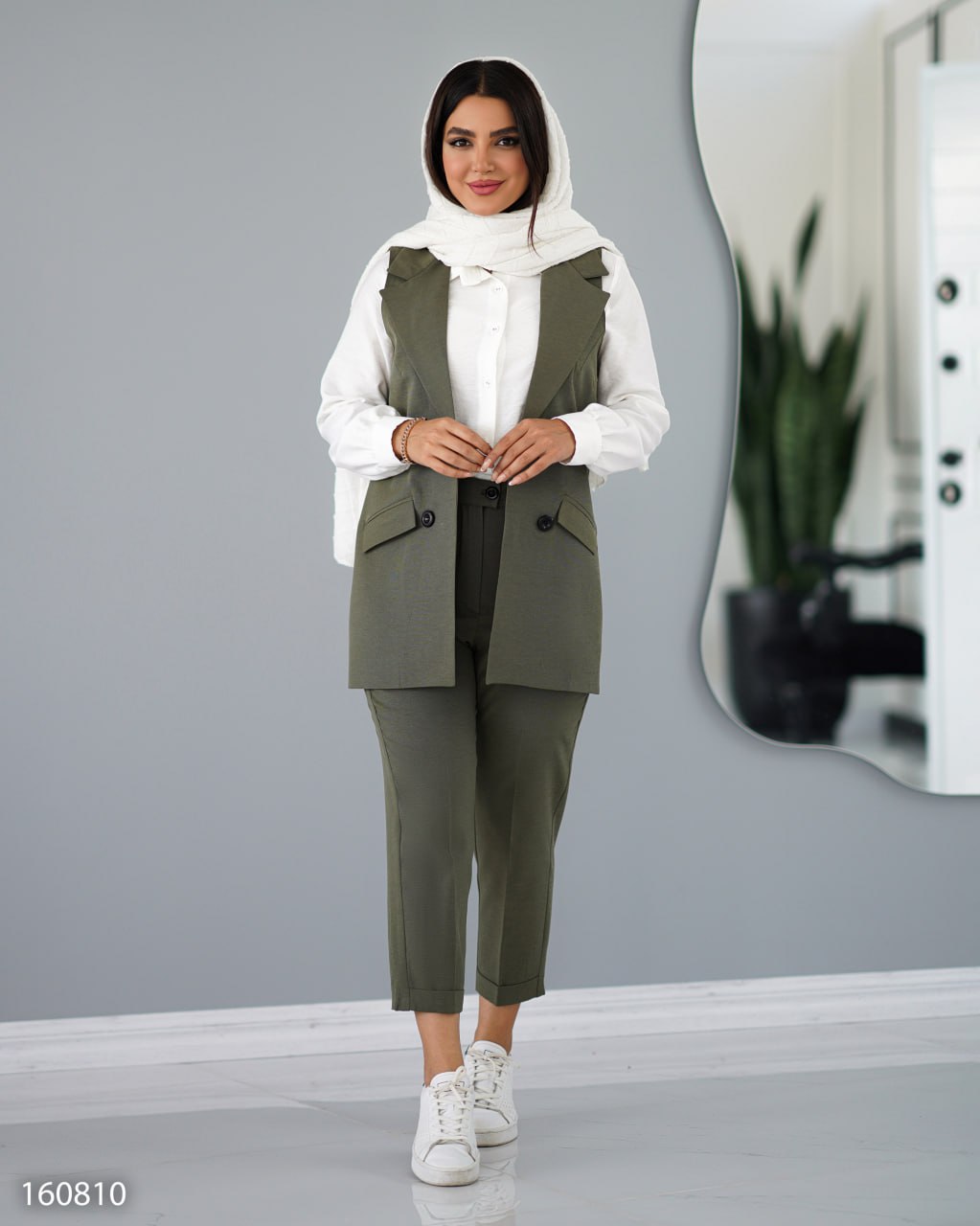 جزئیات: جیب نما_ جلو لایی_ دکمه نما _شلوار جیب دارد_ پشت کمر شلوار کش