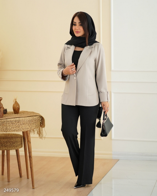 دستهبندی: کت و جلیقه زنانهبرچسبها : کت زنانه، شومیز،مانتو و کتجنس: بزیاق مناسب بهار و تابستانجزئیات: بغل چاکدار.پیش کار لایی.قد: 67