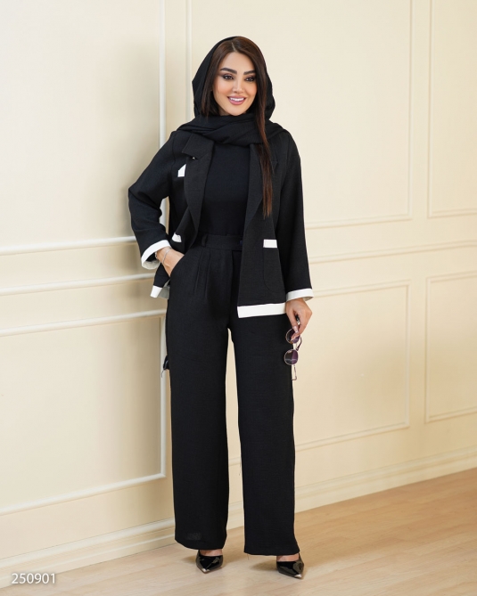 جزئیات: جلو باز.جیب کاربردی.یقه انگلیسی.پشت شلوار کمر کش.شلوار جلو پیله دار