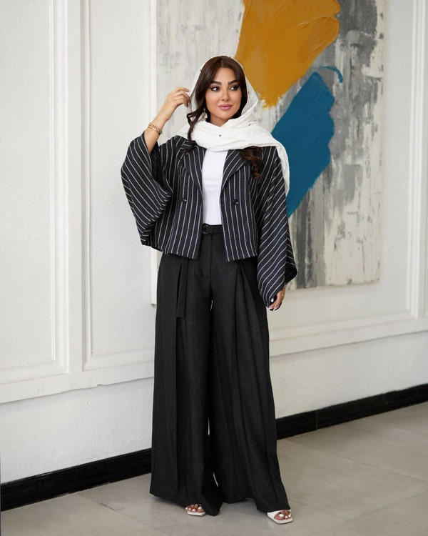 جزئیات: شنل کاملا ازاد.شلوار از پشت کش کار شده.شلوار زیپ و دکمه .اندازه کمر نهایتا تا ۴۶ سایز میشه .